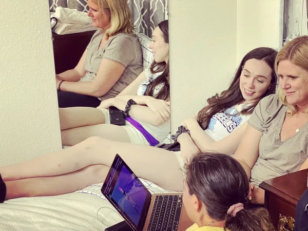 Karen Alexander, Cause and Christi visiting Stanford.