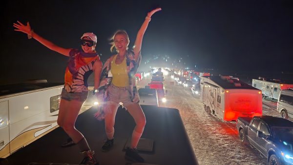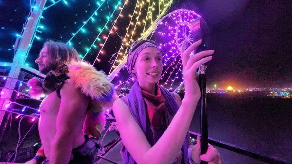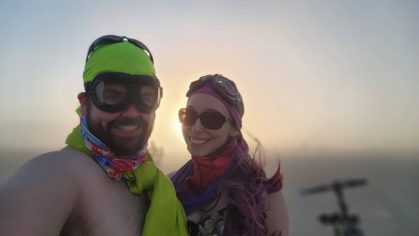 Cause + Christi on Burn Night with the 360 camera (our virtual burner)!