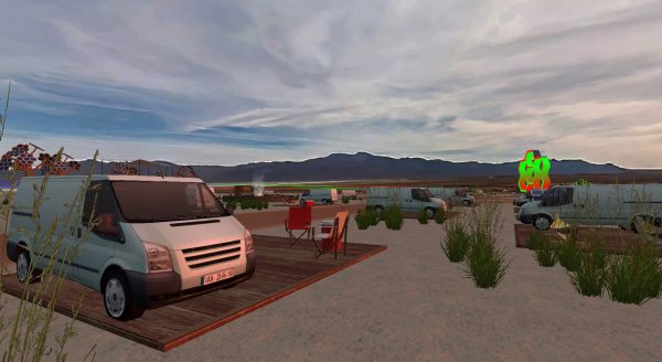 We have collaborated with Big Rock Creative to build out and operate the award-winning BRCvr event in AltspaceVR three years in a row. Not only have we contributed original experiences like Camp Burning Saucer, Donna Summer’s Sunrise Party, The Eco Zone, and Dinner With A Whale, but we also partnered with some traditional theme camps who were not able to 3D model their own art installations and helped to design and integrate their work for the community such as Mikey’s Hug Deli and the Merry Mad Tea Party. We were also fairly instrumental in helping to create many of the special effects employed by community builders like fire barrels, dust storms, ambient sounds, interactive toys, world templates, and more.